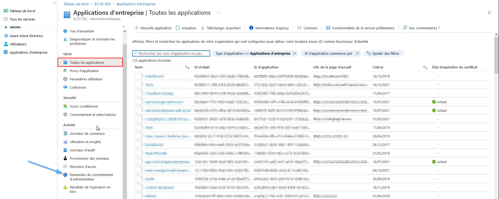 Choisir « Applications d’entreprise » dans le menu à gauche