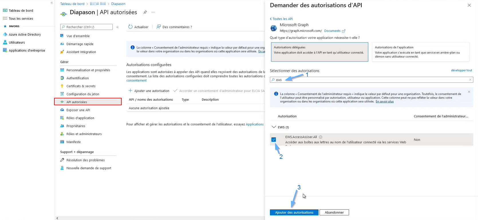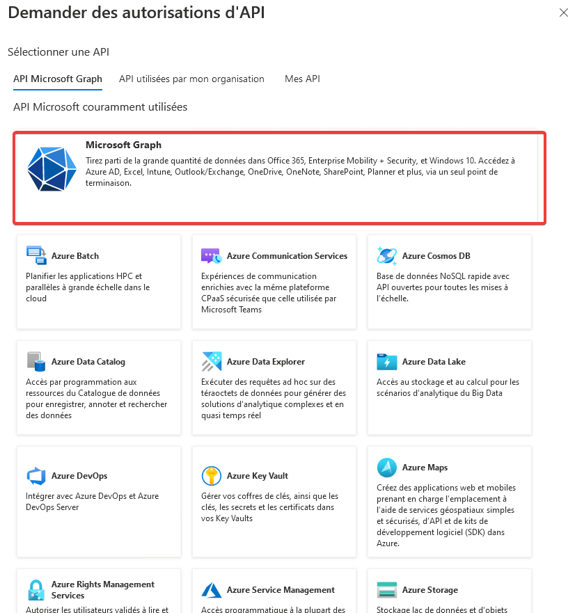 Sélectionner l’API « Microsoft Graph »