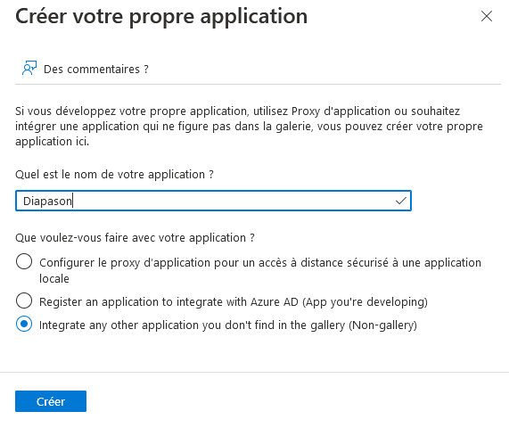 Cliquer sur « Créer votre propre application