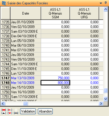 Afin de mettre à jour les capacités forcées de la ressource ASS-L1 pour les dates du 13/10/2009 et 13/10/2009 il faut :