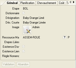 Pour chaque étape du dictionnaire des étapes, on a associé un certain nombre d’informations comme par exemple la durée de l'étape, le temps de préparation.. ces données peuvent être surchargées dans les RGG si on le souhaite !