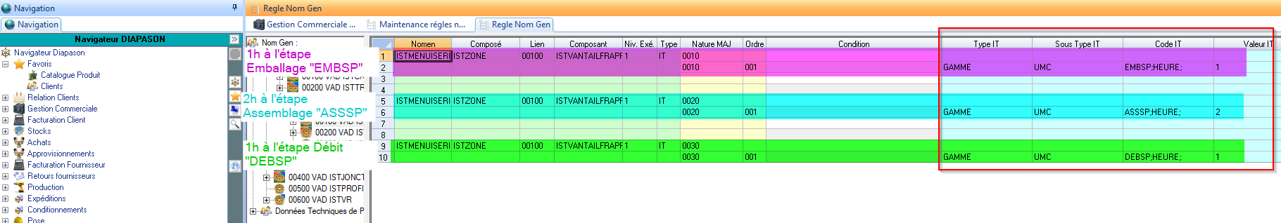 Dans le cas d’un DIAPASON START, c’est la requête RGG FabGamITs qui génère la gamme. Or dans cette requête, on vient chercher des Informations Techniques de cette forme pour générer la charge sur chaque étape de la gamme:
