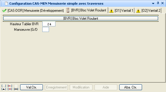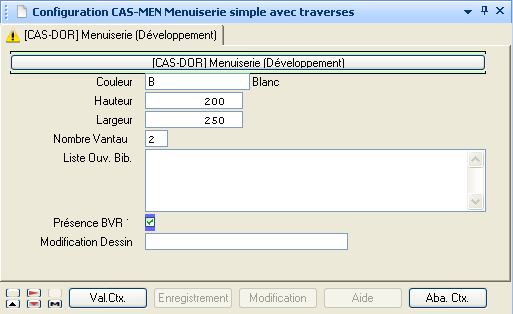 Un scénario multi-contexte permet la définition d’articles complexes et de manière plus structurée grâce au découpage en contextes. La saisie des différents contextes doit commencer par le contexte principal (contexte de plus haut niveau, par exemple le dormant pour une menuiserie). L’enchaînement de saisie des contextes s’effectue alors selon le paramétrage défini sur le scénario.