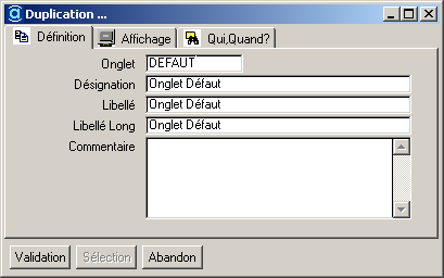 Onglet « Définition »