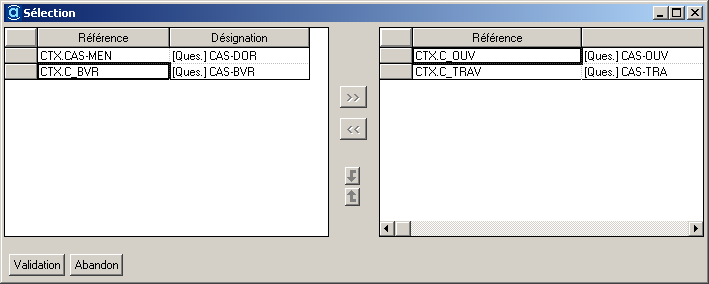 Cette action entraîne l’apparition de l’outil de sélection multiple qui présente les modèles de contextes :
