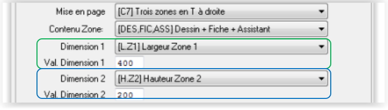 La liste de sélection Dimension 1 permet de sélectionner quelle partie dimension de zone l’on va renseigner.