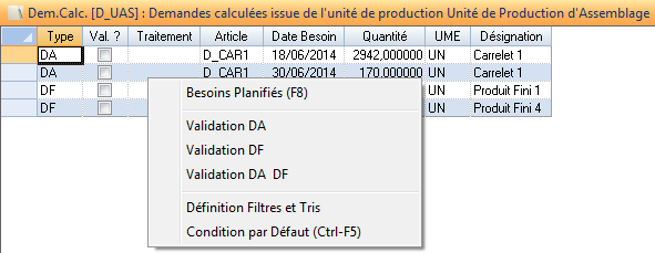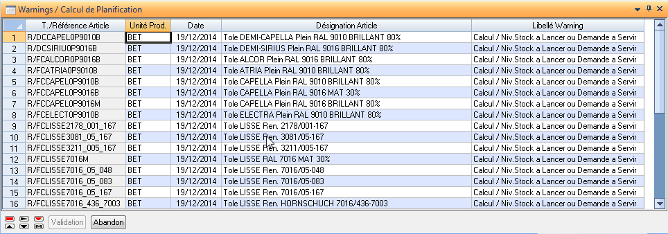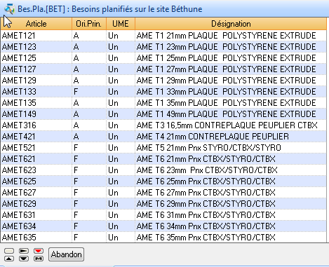Cette liste présente les articles pour lesquels au moins un besoin est positionné.