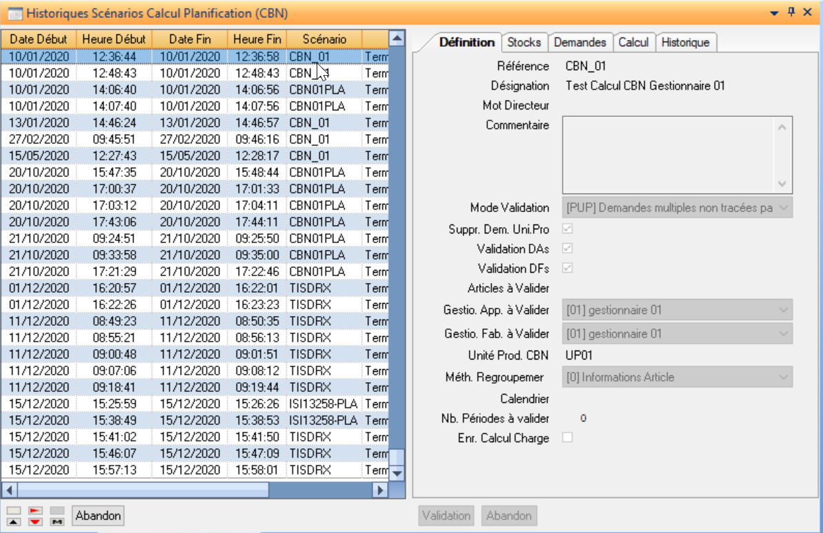 Historique calcul planification