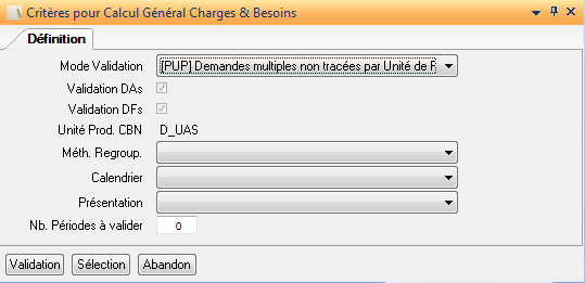 Nombre de périodes à valider : horizon à prendre en compte lors de la validation pour les demandes de type PUP. Cette zone est saisissable uniquement dans le cas où « Mode Validation » a pour valeur « PUP ».