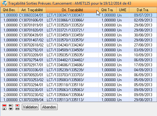 Remarque : DIAPASON mémorise au maximum 200 évènements détails d'entrées et sorties prévues pour une date donnée ; s'il y en a plus, la liste de traçabilité affiche un besoin dont l'origine est décrite par des points de suspension et la quantité globale non détaillée.