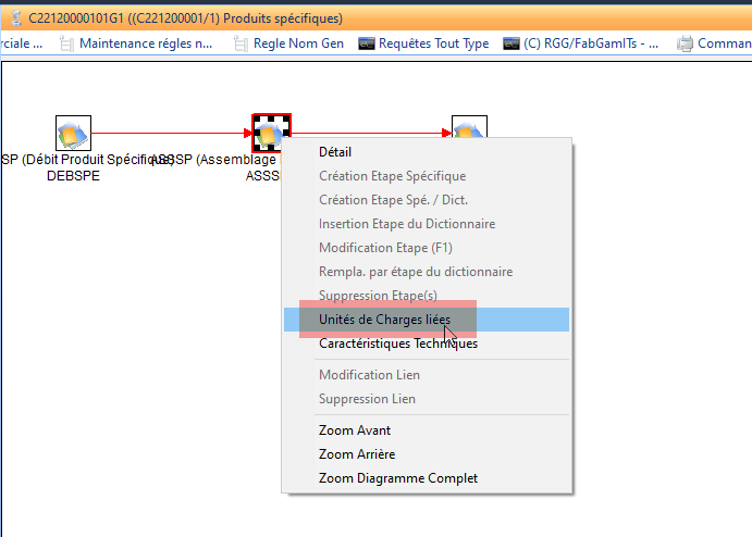 Puis, cliquez sur l'étape de gamme que vous souhaitez pour connaitre la charge à passer sur cette étape pour un seul produit de la ligne de commande ( si on a plusieurs produits sur la ligne de commande, la charge n’est pas multipliée). Par exemple combien de temps passe-t-on sur l'étape d’Emballage de la gamme ?