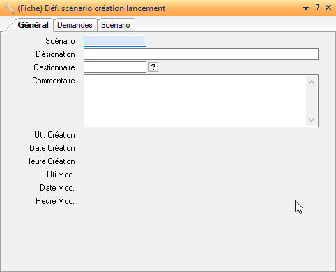 ![]() | La fiche d’identité du scénario, rien de bien sorcier 🪄 . Le gestionnaire permet de filtrer les accès au scénario. La liste d’aide présente la liste des gestionnaires de fabrication. |