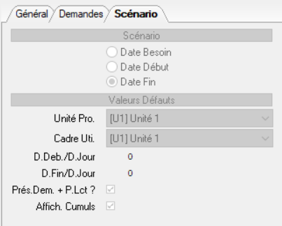 1.Règle extraction Demandes: on choisit ici de quelle manière on veut extraire les demandes de fabrication à afficher dans le tableur de lancement (partie haute de l’outil de lancement). En général on choisit ici “REB”, car ça permet d’avoir plus de liberté pour définir quelles demandes de fabrication extraire ! 2. Règle: On vient renseigner la règle d’extraction de la demande: cette règle permettra de définir quelles Demandes de Fabrication doivent être affichées dans le tableur de lancement, parmi toutes les demandes de fabrication existantes. Comment fonctionne cette requête ? ➡️ Requête REB d'extraction des Demandes de Fabrication ( DF ) pour le lancement 3. Affichage: On renseigne ici la règle d’affichage de la demande: elle permet de définir quelles sont les colonnes du tableur de lancement. Comment gérer cette règle d’affichage ? ➡️ Règle d' affichage du tableur de lancement et requête REB de type RA-DF 4. Règle LCP: on peut renseigner ici plusieurs règles de constitution de séries qui seront disponibles pour l’utilisateur qui utilise le scénario. L’utilisateur choisira dans l’outil de lancement laquelle de ces règles de constitution utiliser (Action Exe. Règle Proposition de Lct.) Règle REB de type LCP de constitution des séries pour le lancement en production 5. Reset. Propositions : Ce drapeau indique si les propositions sont supprimées à chaque exécution de la règle REB/LCP (valeur défaut à Oui). 6. Découpe/Cdi ? Ce champs permet de définir si on doit découper l’OF par rapport au conditionnement de l'article (Fiche Article : Zone Qte Mul Fab , Champ DDArtic.FabQteMul )