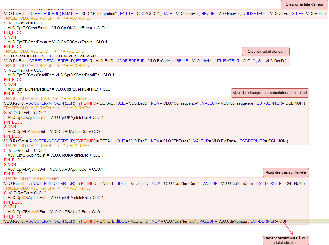 L’ajout des clés sur l’entête se fait via la fonction “AJOUTER-INFO-ERREUR” avec “TYPE-INFO= ENTETE” :