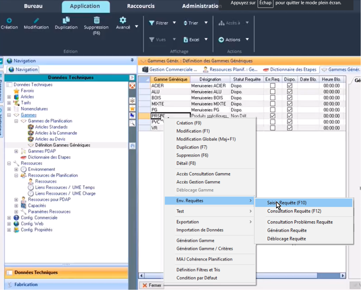 Et écrire le code ci-dessous dans la requête: cela permet d’exécuter la requête RGG FabGamITs de gestion de la gamme !