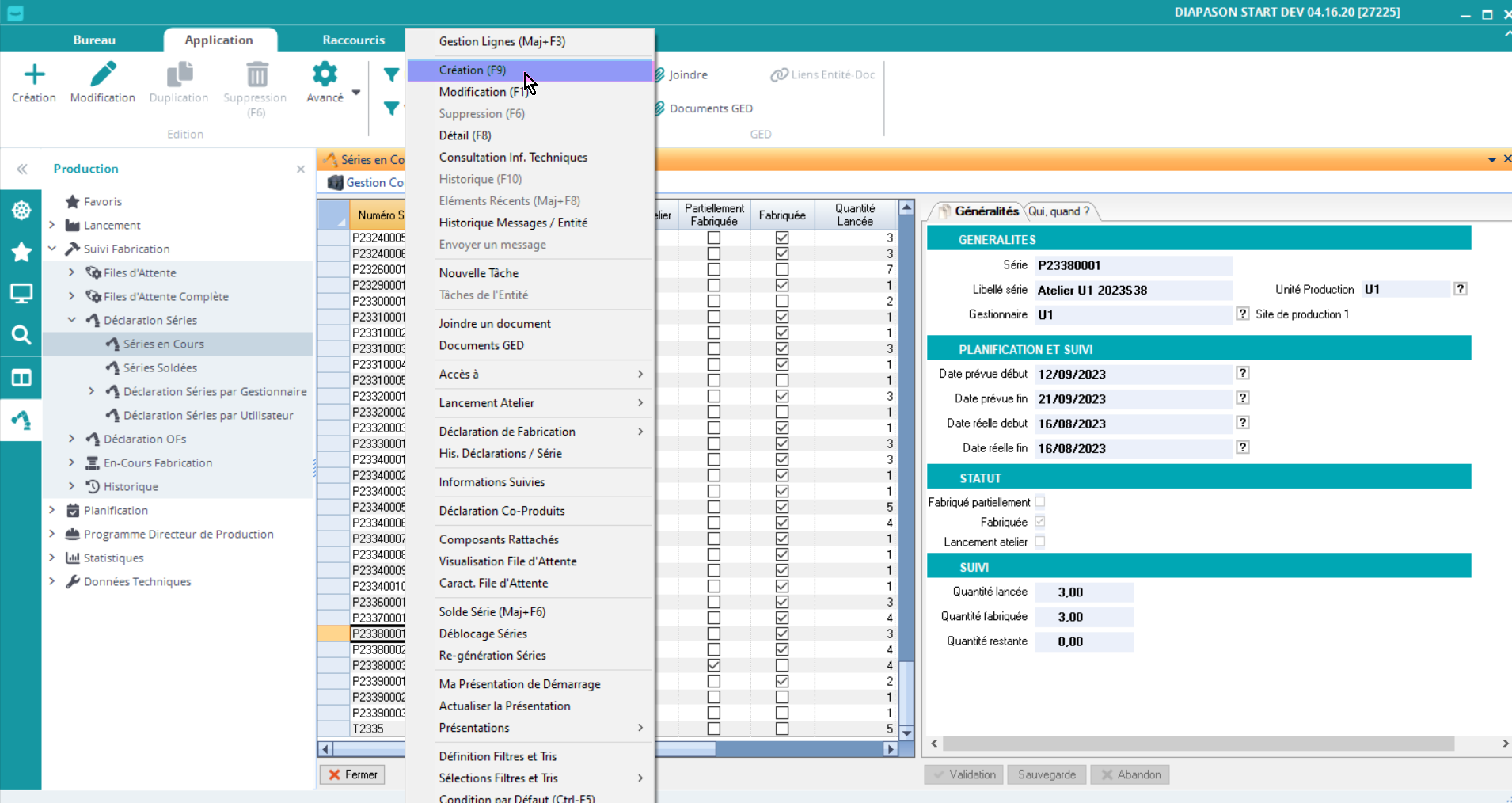Créer une série ou un Ordre de fabrication ( OF ) manuellement