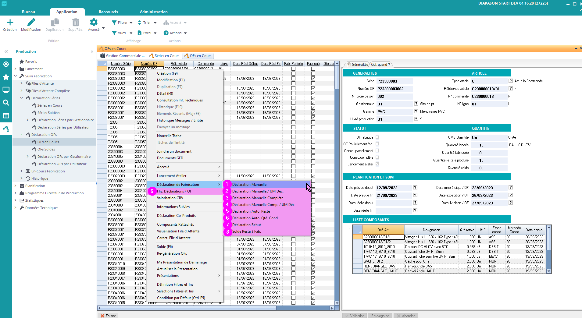 On a différentes manières de déclarer un ordre de fabrication (OF):