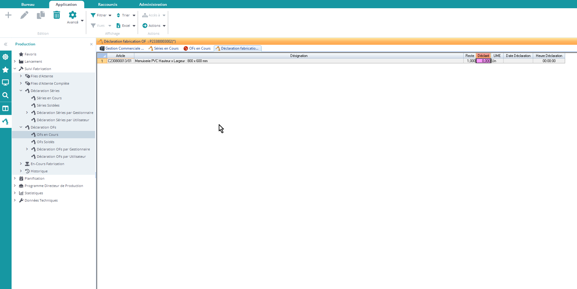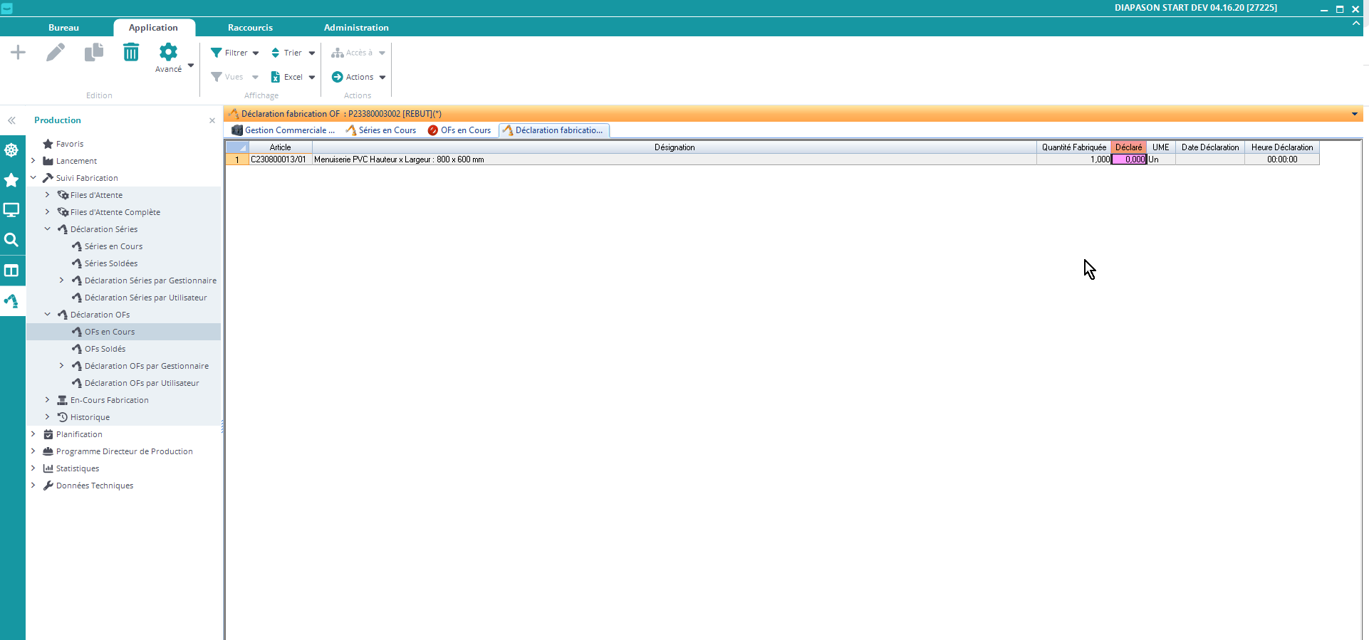 Déclarer un Ordre de Fabrication