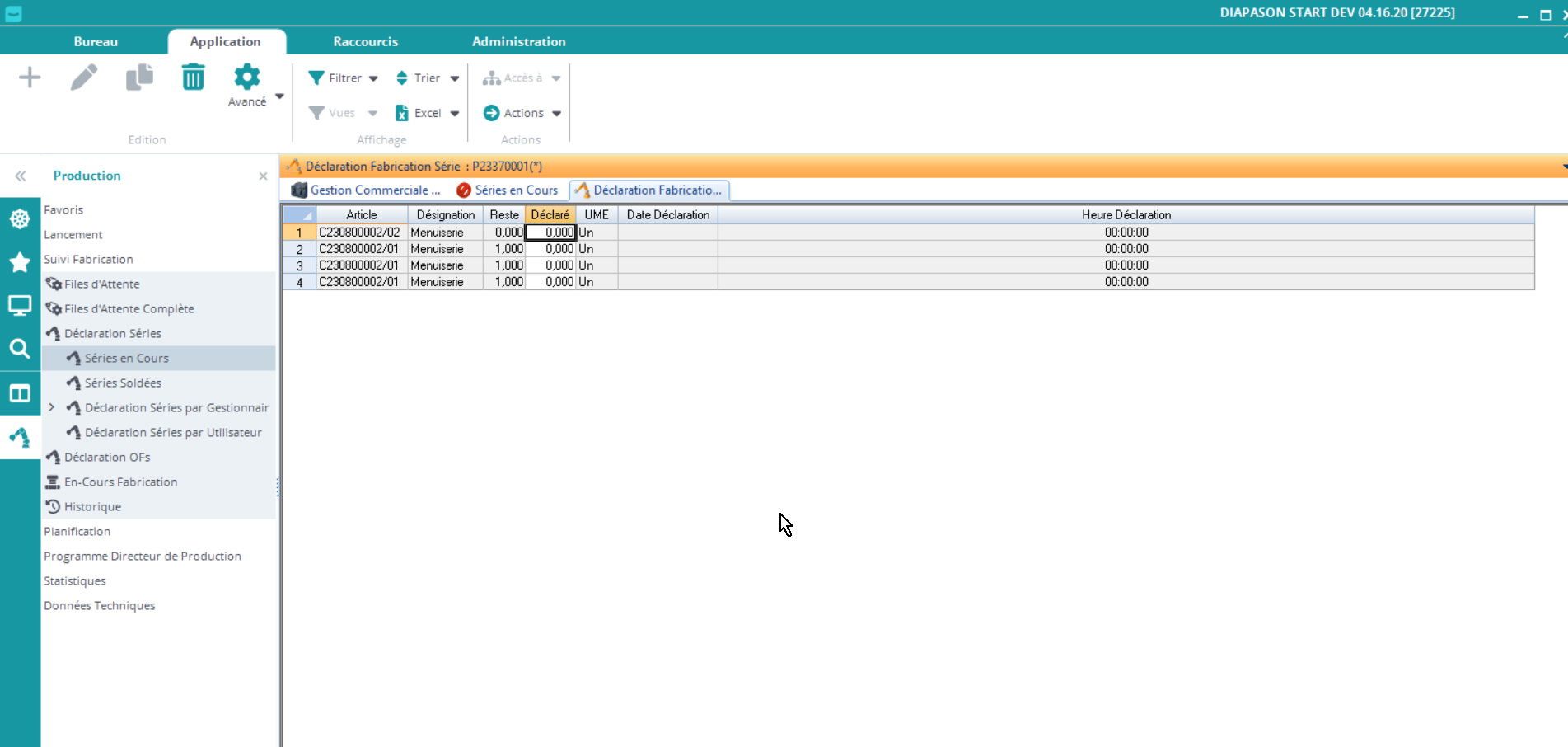 Les séries sont créées manuellement, ou lors du lancement en production. Une fois la série réalisée, on peut venir la déclarer ! Pour cela, il existe différentes options: