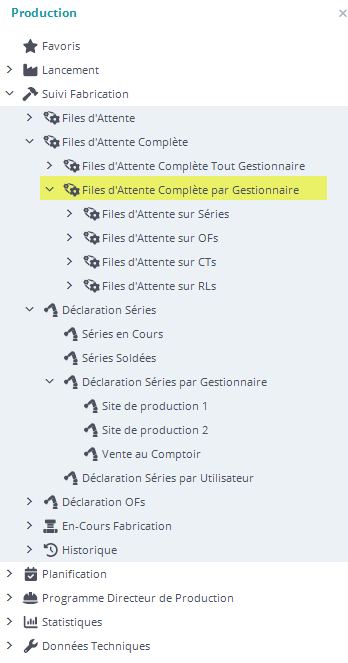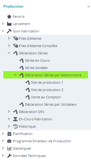 Ce champ gestionnaire permet de classer les séries la branche “Déclaration Série par Gestionnaire” ci-dessous surlignée en vert.