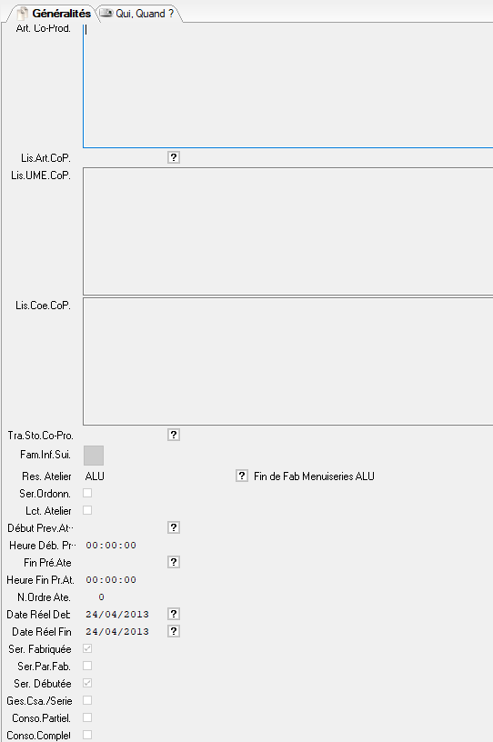 Les co-produits sont des articles “annexes” obtenus lors de la fabrication du produit principal (celui indiqué dans le champ GenRefArt de l’OF).