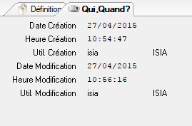 Util. Création: Utilisateur ayant créé l’entité. Non saisi, il est initialisé lors de la création de l’entité.
