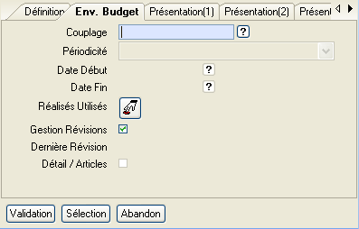 Date Début: Date de début de période du couplage et donc du Budget. Zone non saisissable.