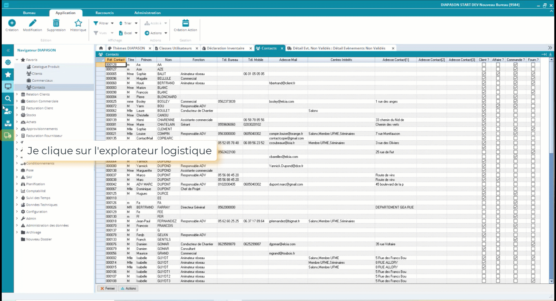 double-cliquer sur la fiche pour accéder à la saisie en mode modification directement sur la zone où il a double-cliqué (sous réserve que celle-ci soit accessible en modification).
