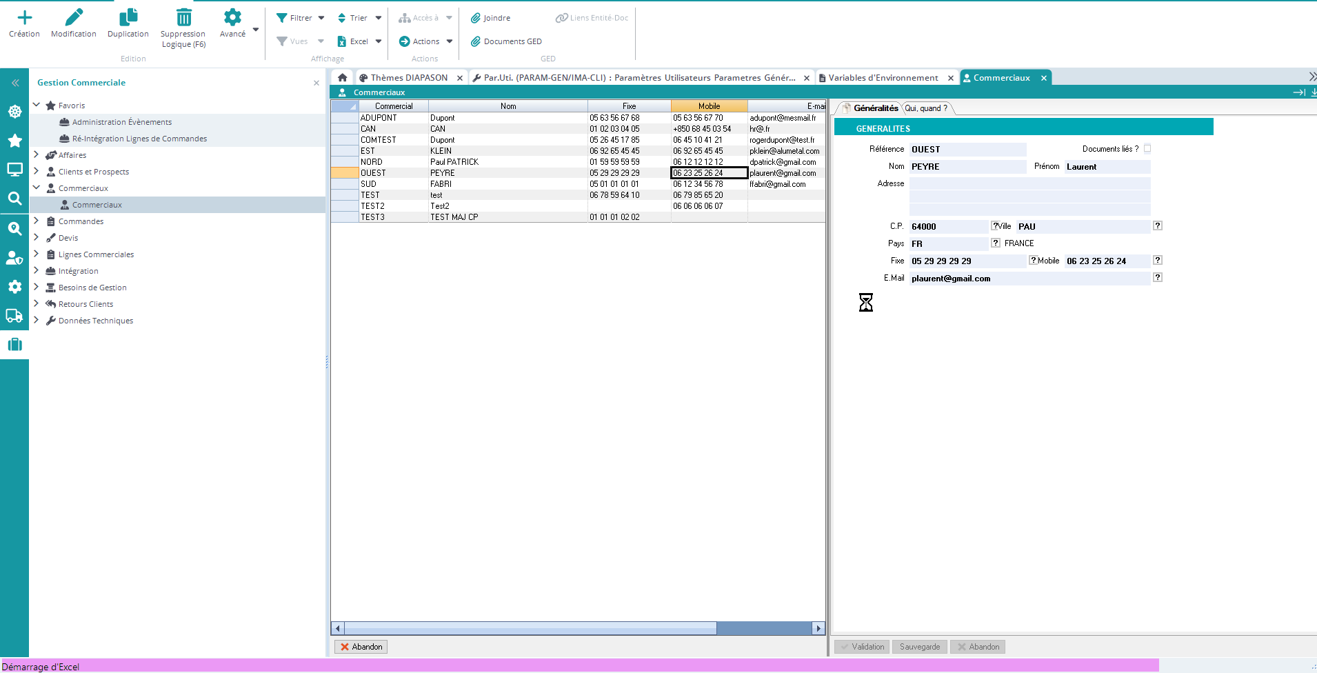 cliquer sur la fiche pour accéder à la saisie en mode modification (sous réserve que la modification soit active et disponible pour l’utilisateur).