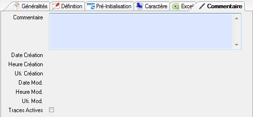 Commentaire: Champ libre permettant de saisir un commentaire sur le Tableur Dynamique