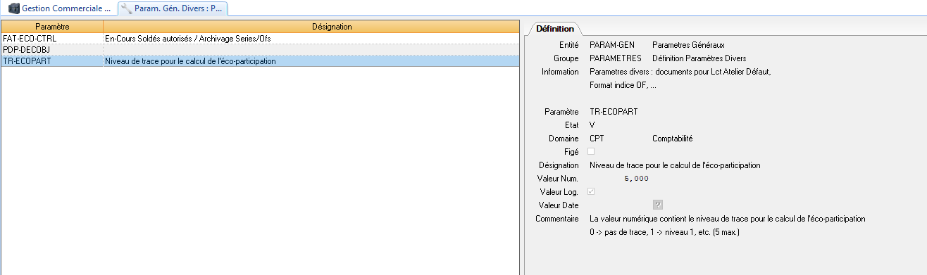 Paramètre TR-ECOPART