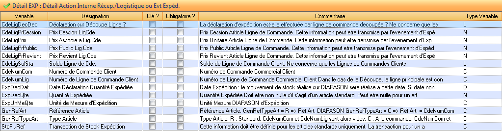 EXP : Récep./Logistique ou évènement expédition ( ENR-ACT-ENT )