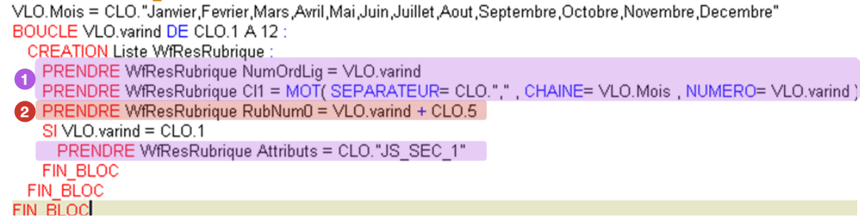 Chaque élément de cette structure devra être alimentée via la liste WFResRubrique de la requête qu’on vient de définir, avec :