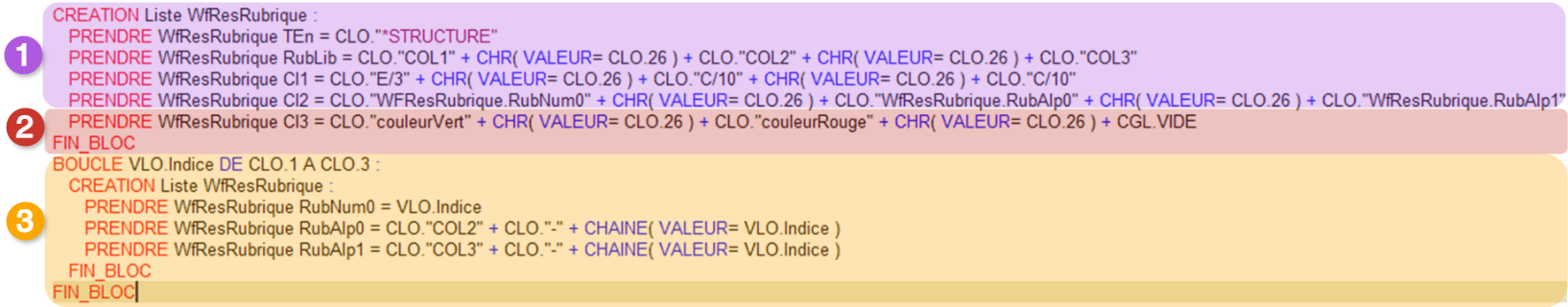 Champ : quelle information récupérées dans la liste WFResRubrique, alimentée à l'étape précédente, va-t-on afficher dans cette colonne ?