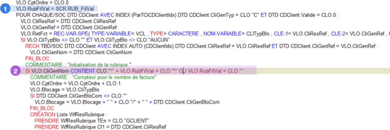 1) On récupère dans la SCR.RubFilVal ce que l’utilisateur a sélectionné 2) On va venir initialiser la rubrique en fonction de ce que l’utilisateur a sélectionné |