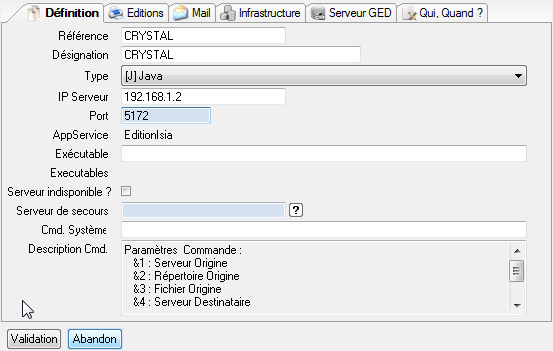 Edition Crystal : Autorise ou non les éditions Crystal Report sur le serveur