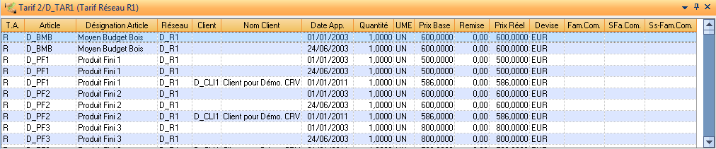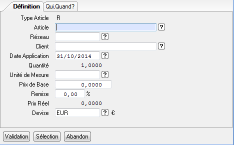 Pour vente : définir un prix de vente par date et/ou quantité par Réseau ou Réseau / Client.