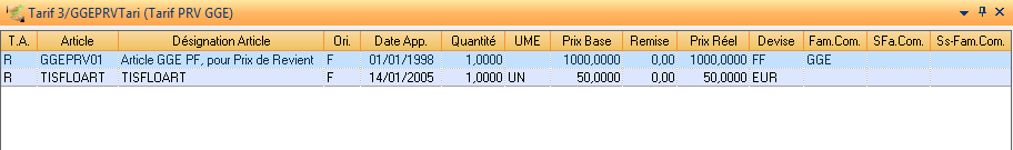 Lors de la création d’une ligne de tarif, les informations doivent être initialisées selon les règles décrites ci-dessus.