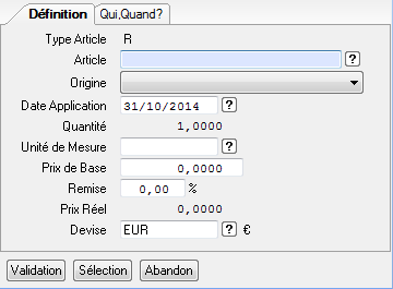 Prix : Prix de vente de l'article pour une quantité unitaire (remise non incluse). Saisissable