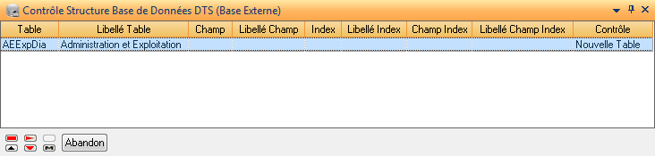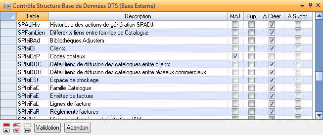 Contrôle Structure Base: Cette action n’est active que sur une base de données EXTERNE à DIAPASON (base de type « 1 » ou « E »). Elle présente la liste des tables de la base de données locale externe :