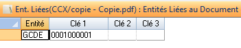 Clé 1: Clé correspondant à une occurrence de l’entité sélectionnée ou ‘*’ si plusieurs occurrences sélectionnées.