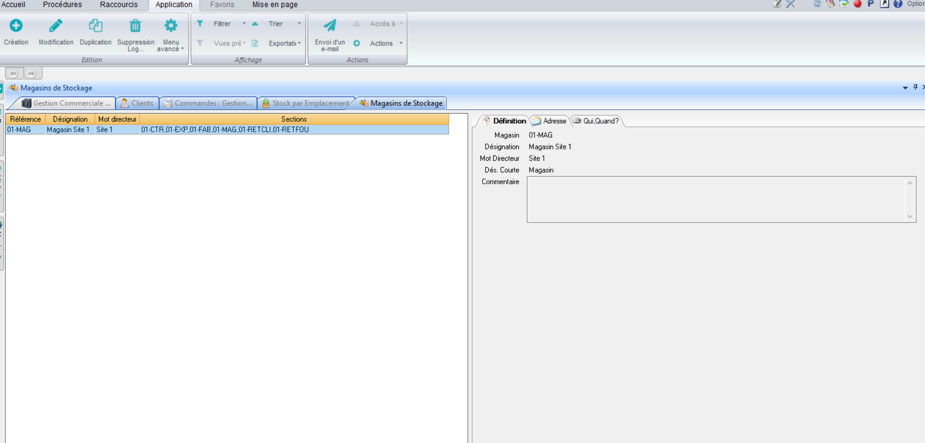 ![]() La fiche du magasin est une GFG | ![]() La fiche de l’emplacement est une GFG |