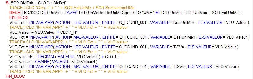 La première utilisation de la fonction permet de récupérer la valeur de la variable standard « DesiUniMes » pour l’unité de mesure courante