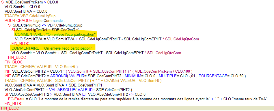 Si les remises et escomptes, sont gérées en % et que les taux sont remis à jour, à la recalcul des montants, il sera nécessaire de retirer le montant de l'éco-participation de la base de calcul.