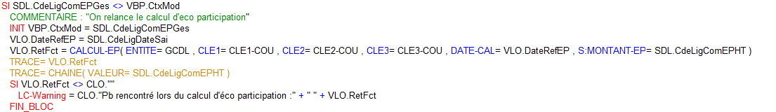 La variable de retour de la fonction CALCUL-EP sera à récupérer et à traiter pour détecter un problème de calcul