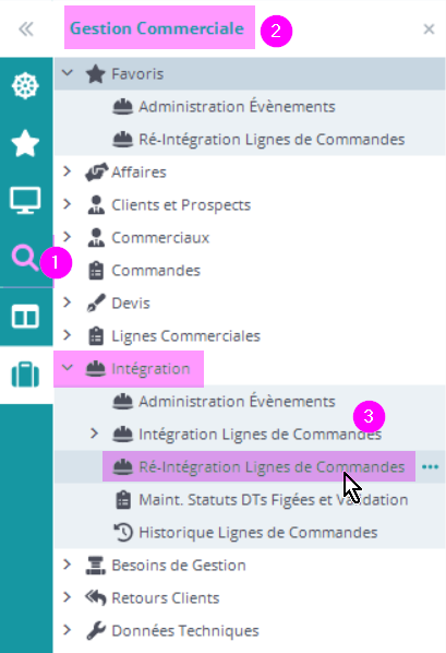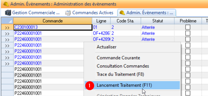 Puis, dans la liste des commandes qui s’affichent, sélectionner là ou les commandes à intégrer, et clic. Droit “Lancement Traitement”: