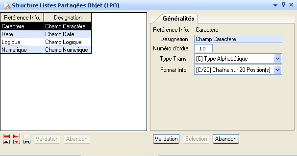 Format Info.: Format du champ, directement lié au type sélectionné précédemment.
