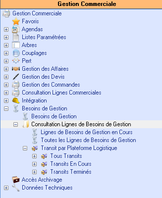 Cette application présente, pour l’unité logistique sélectionnée, toutes les lignes de besoins de gestion qui sont en cours de transit ou pour lesquelles le transit est terminé.