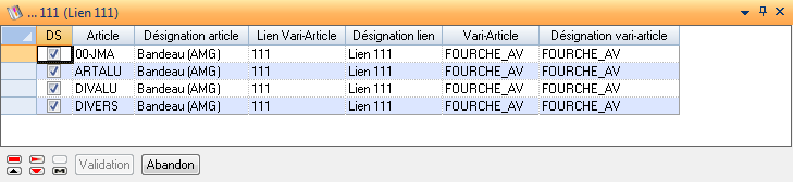 Désignation Vari-Article : Indique la désignation du vari-article dépendant du lien.