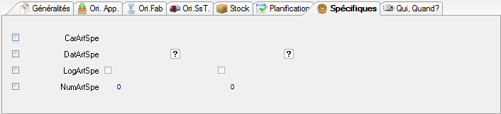 « Onglet Spécifiques »